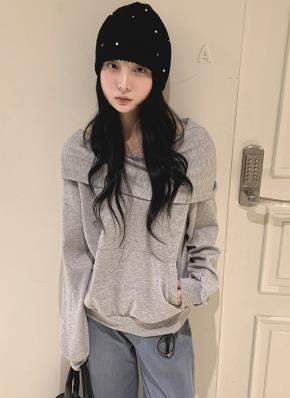 オフショルダーフードルーズ長袖カンガルーポケット無地スウェット2WAY