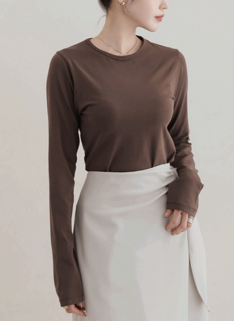 ラウンドネックベーシックスリム長袖ハーフ無地Tシャツ