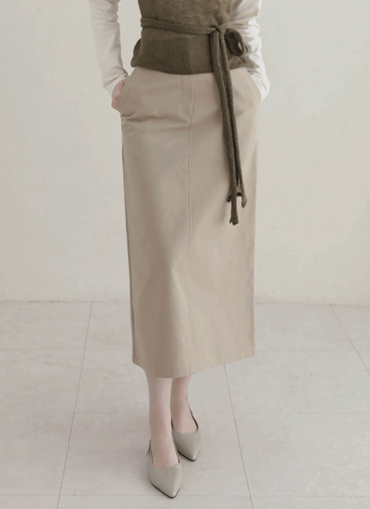 コットンポケットラインホックシークレットボタンループバックポケットHライン(ロング丈)ヒドゥンジッパー無地スカート