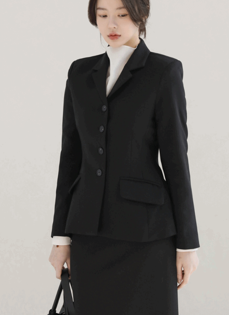 テーラードカラースリット肩パッドツーボタンフラップポケットジャケット