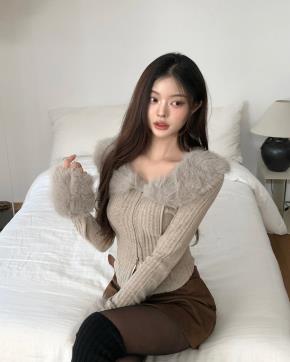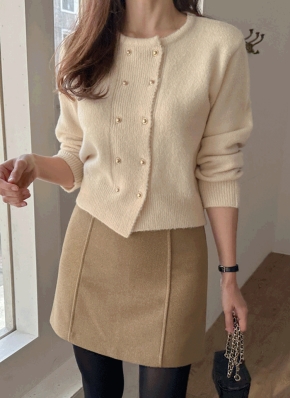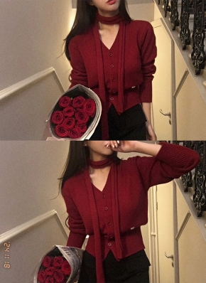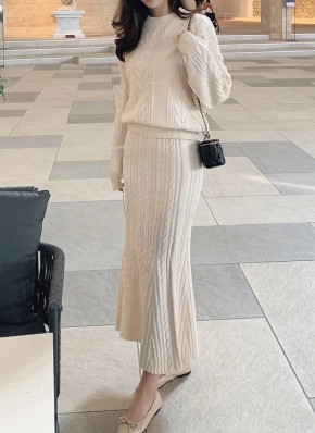 ファータッチVネックニットカーデ&スリットスカートSET