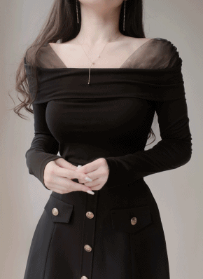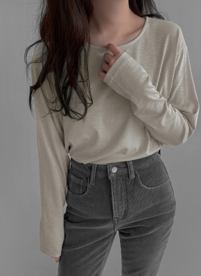 ウール混シースルー長袖レイヤードラインラウンドネックルーズTシャツ