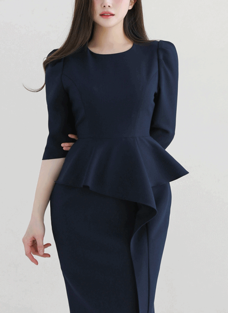 [選べる丈]デニムボタンカラーロング長袖ワンピース