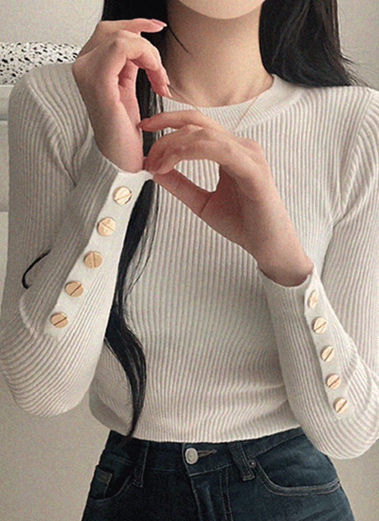 リブVネックスナップボタンシャーリングカラーTシャツ