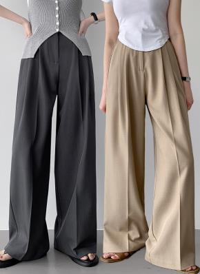 [選べる丈]ピンタックウエストゴムワイドスラックス