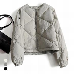 キルティングラウンドネックスナップボタン軽量ダウンジャケット