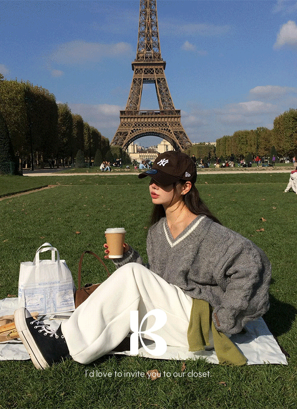 [beidelli made]裏起毛Vネック刺繍クロップドスウェット