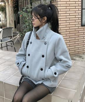 キルティングハイネックポケットショート長袖ダブルボタンコートストラップ付