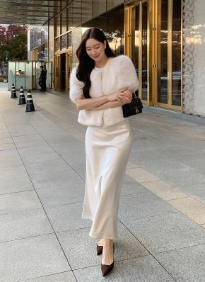 ボタンジップアップラウンドネックポケット長袖セットアップスカートジャケット