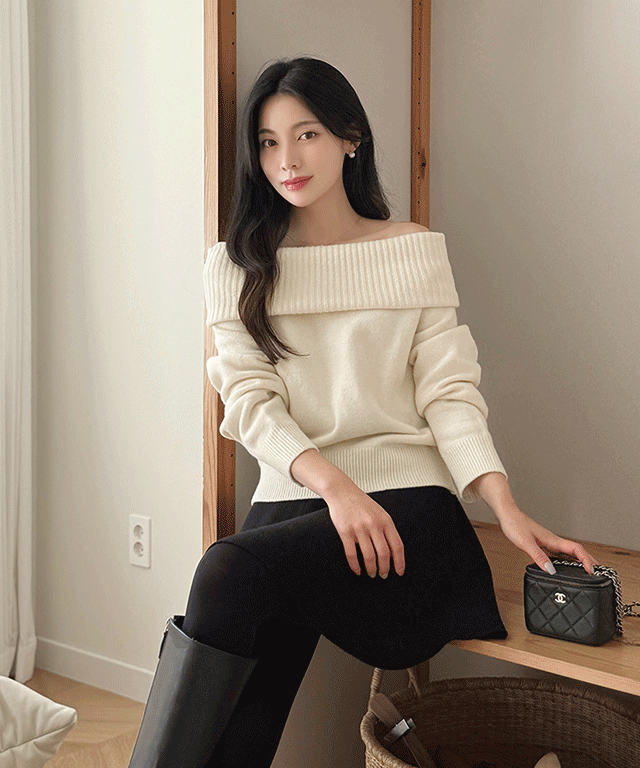 オフショルダールーズ長袖ノルディックニットストラップ付