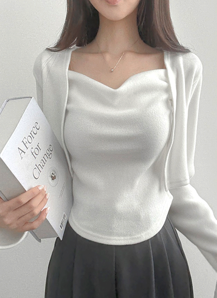 ピーチ起毛ドレープシャーリングクロップドスリムアンサンブル