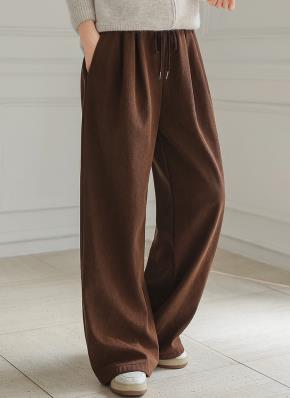 ファー裏地ニットワイドウエストゴムドローストリングパンツ