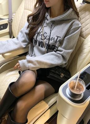 ウール混フードジップアップワイドウエストゴムラグランダブルジップセットアップ