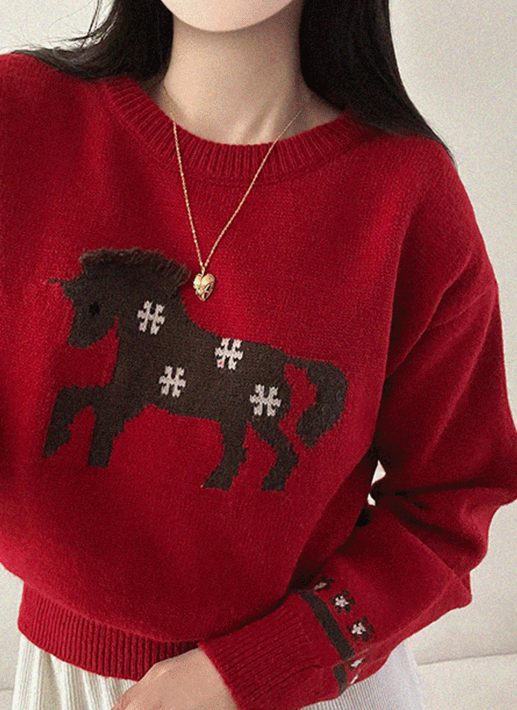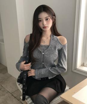 スリムスリット長袖ラウンドネックフェイクボタンニット