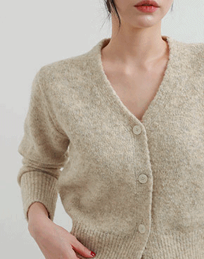 ウール混メランジVネックカーディガン