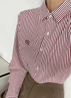 ハート刺繍ストライプシャツ