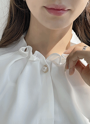 パール調ボタンフリルブラウス