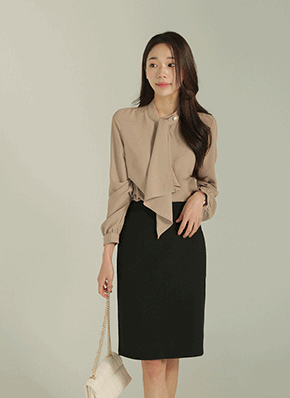 タックスリットネックブラウス