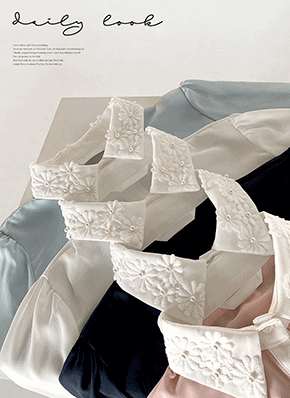 パール調花柄カラーネックブラウス