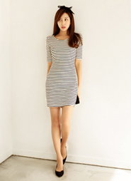 | [品切れ] ◆◆雑誌Ray11月号掲載◆◆ボーダーパターン綿100%素材ラウンドネック5分袖肩パッド入りワンピース・全4色 |