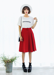 | [品切れ] ●●雑誌SAKURA夏号/Seventeen7月号/JELLY5月号/美人百花5月号掲載●●ベルトsetフレアミディスカート・全3色 |