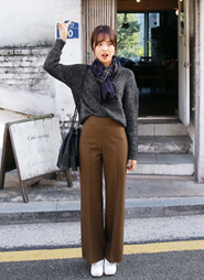 ツータックハイウエストウールワイドパンツ・全2色