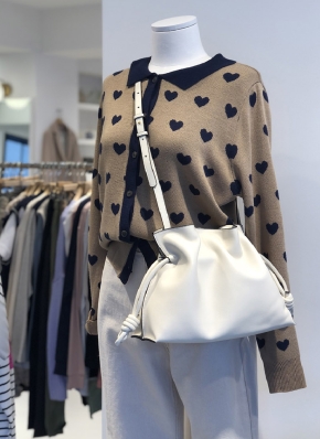 カウレザージップアップカラーショルダーバッグ