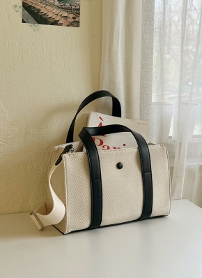 レザー調配色キャンバストートバッグ