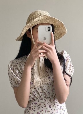 レースストラップペーパーヤーンバケットハット