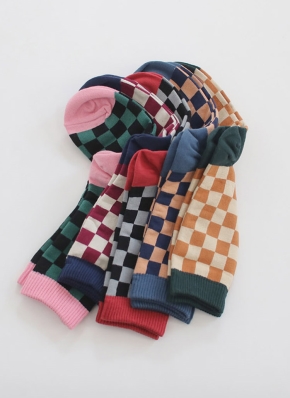 配色ブロックチェックソックス