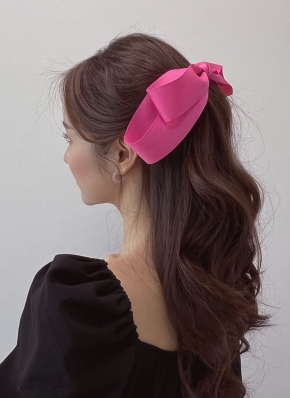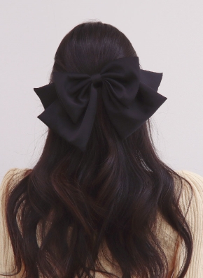 ビッグオールブラックリボンヘアバレッタ