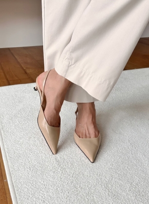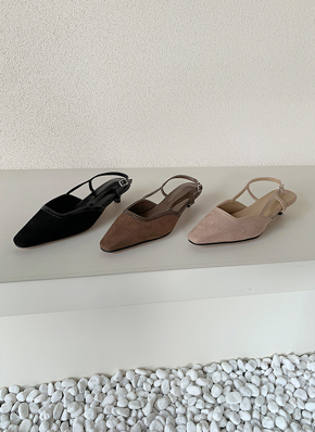 ポインテッドローヒールスリングバックシューズ