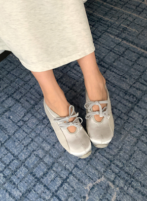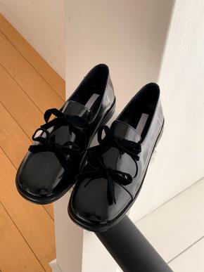 エナメルアーモンドトゥリボンシューズ