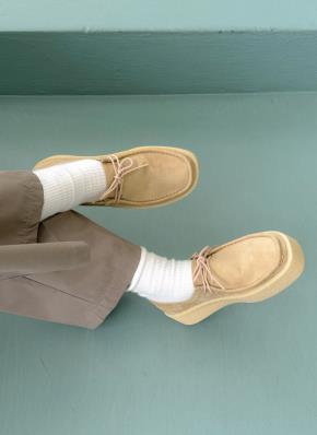 スエード調スクエアトゥ厚底ローファー