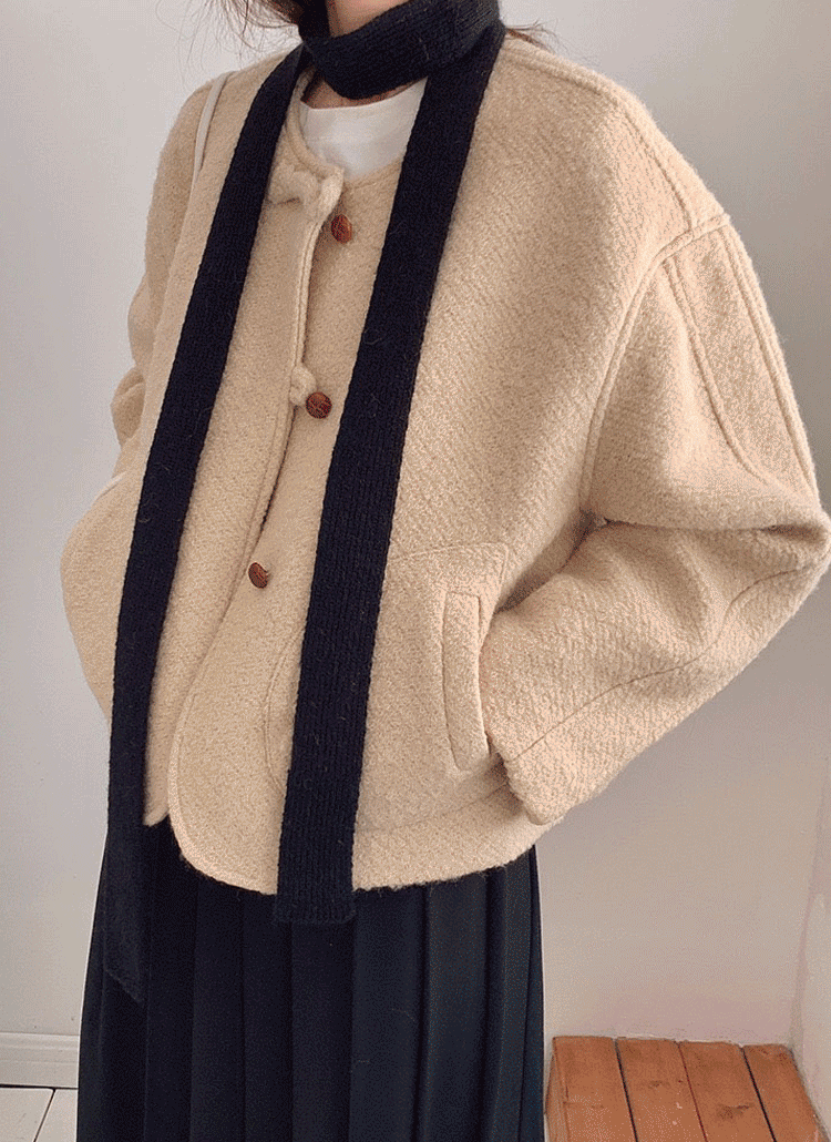 ウール混パッチ無地マフラー