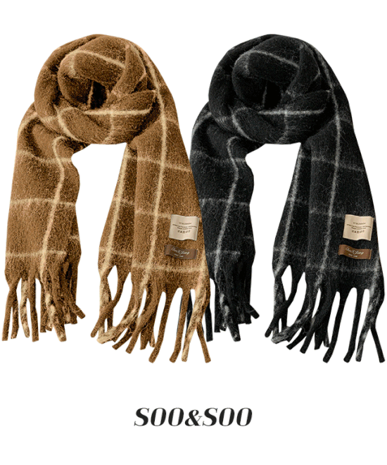 フリンジロングビッグチェックマフラー