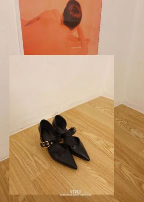 ベルトポインテッドトゥフラットシューズ