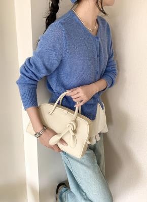 ミニバッグチャーム付ハンドメイドニットハンドバッグ
