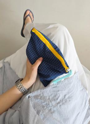 チェック配色ポーチ