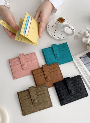 カウレザースナップボタンカラーカードウォレット
