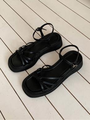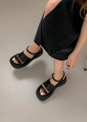 プラットフォームバックルヒールサンダル