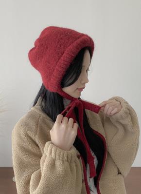 ニットリボンストラップ帽子バラクラバ