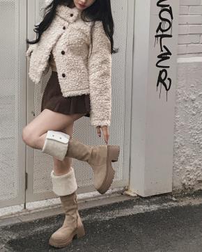 裏起毛スクエアロングブーツ