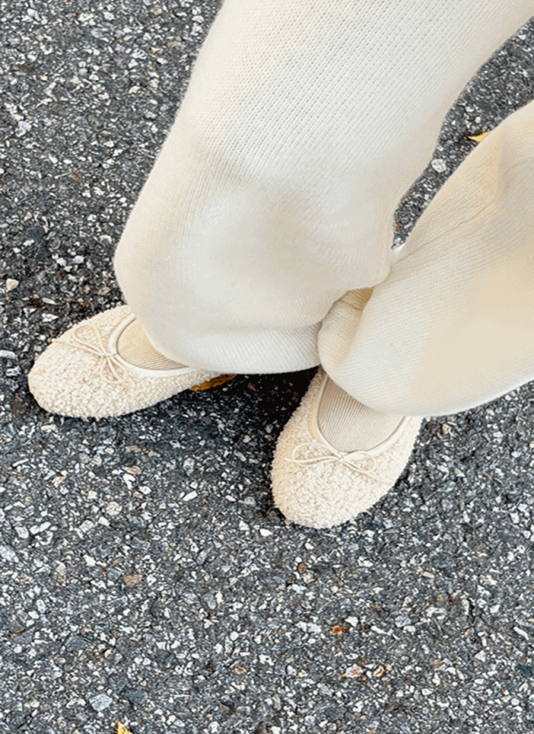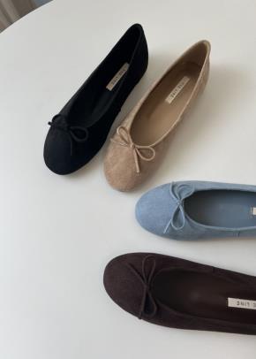 ツートーンアーモンドトゥリボンフラットシューズ