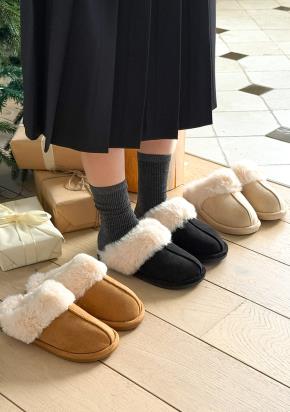 ファー裏地スエード調ウンドトゥカラースリッパ