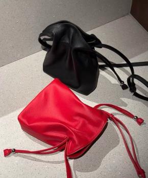カウレザーカラー無地バケットバッグポーチ付