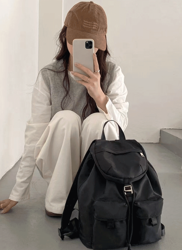 ナイロンジップアップベルトポケットドローコードバックパック
