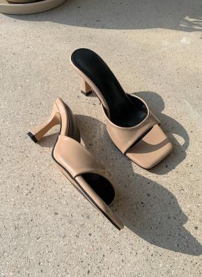 レザー調ヒールサンダルミュールSS