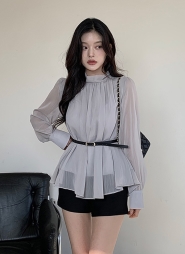 ベルト付スカーフモックネックシフォンブラウス・p710010