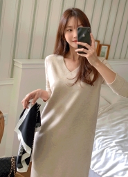 Vネックロングニットワンピース・p696321
